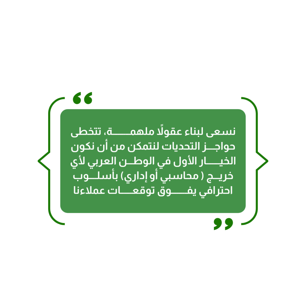نحن لا نتوقف عند التدريب فقط، بل نقدم استشارات مهنية متكاملة تساعد في تحسين الأداء المالي والإداري لشركتك. كما نقدم برامج فعّالة وسهلة لإدارة حسابات شركتك (صغيرة أو متوسطة) مصممة بشكل مفصل لطبيعة عملك ،. نحن ملتزمون بتقديم تجربة تعليمية مبتكرة تضمن لك التفوق والتميز في مجالك!