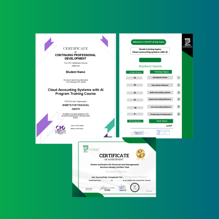 هو برنامج تدريبي متكامل يهدف إلى تزويد المشاركين بمهارات متقدمة في المحاسبة السحابية المدعومة بالذكاء الاصطناعي، مع التركيز على استخدام منصات المحاسبة السحابية مثل (QuickBooks وZoho Books وXero)، بالإضافة إلى البرامج المحاسبية المعتمدة في السوق السعودي مثل (دفترة وقيود)